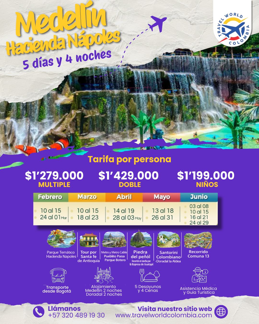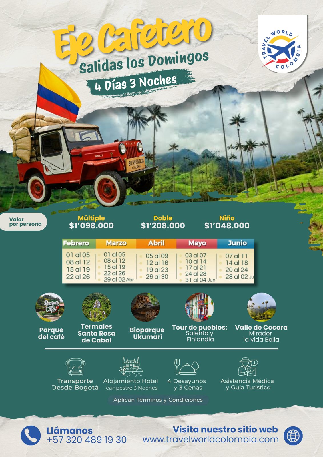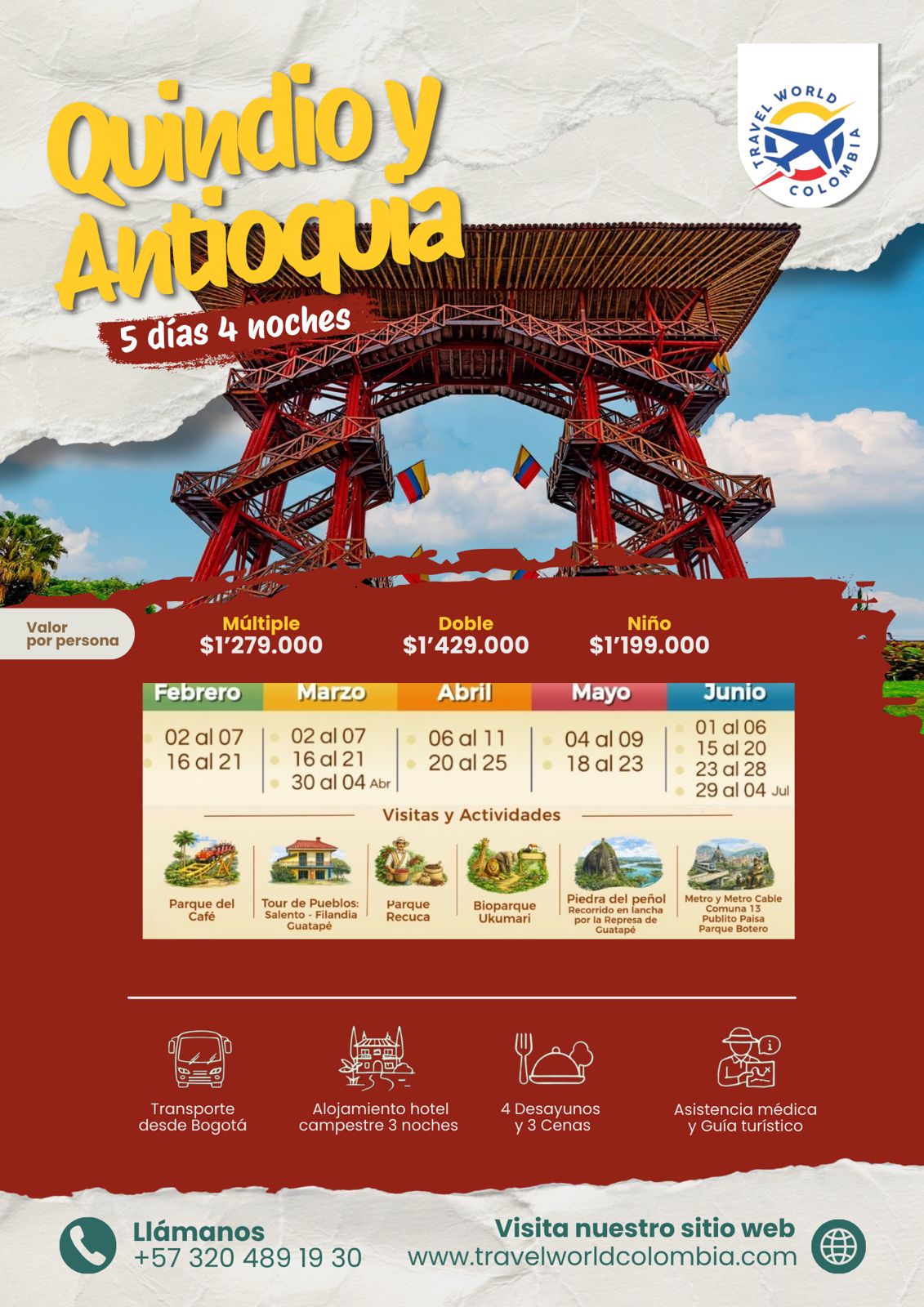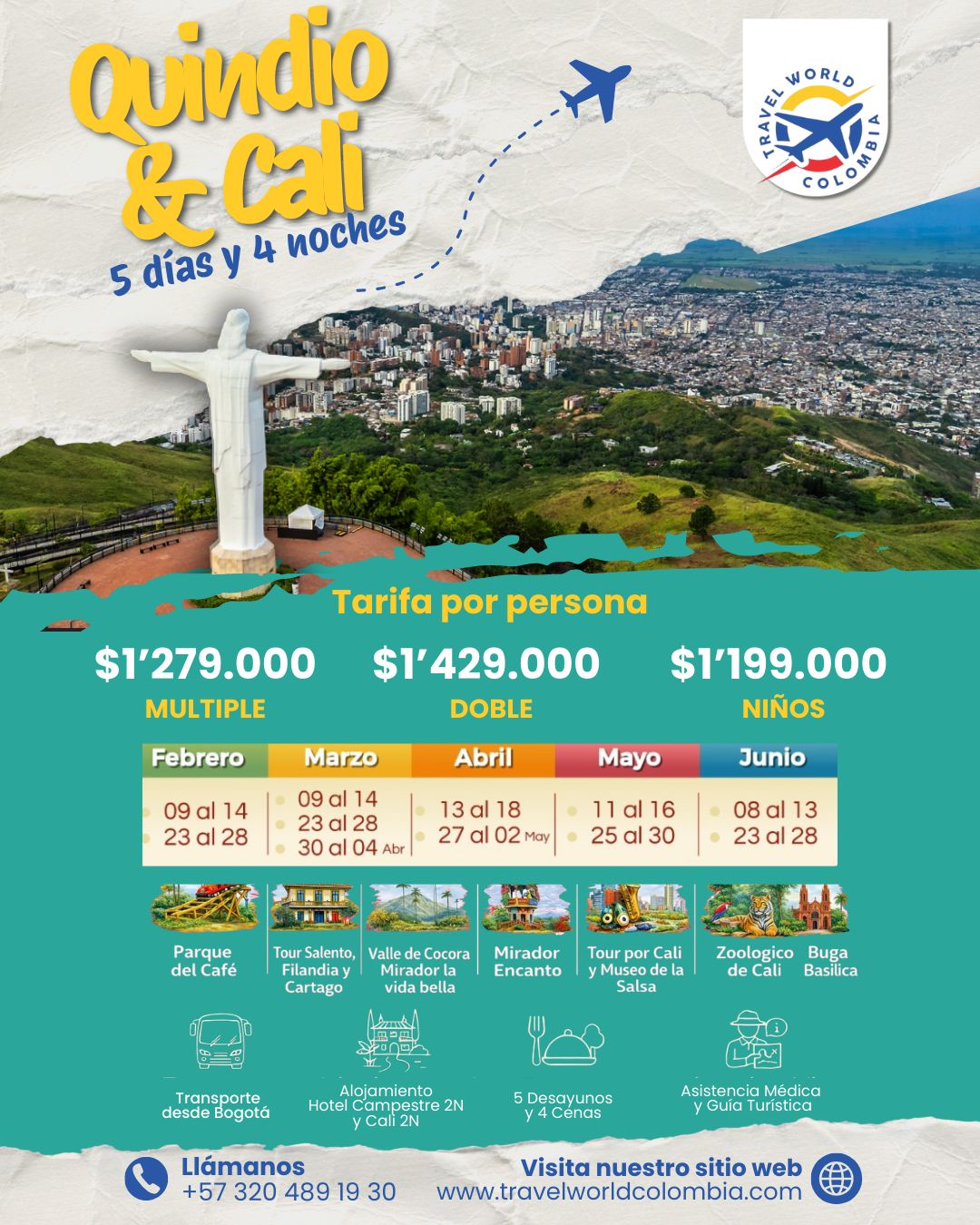 Nuestros planes para viajes nacionales te permiten explorar la belleza natural de Colombia.